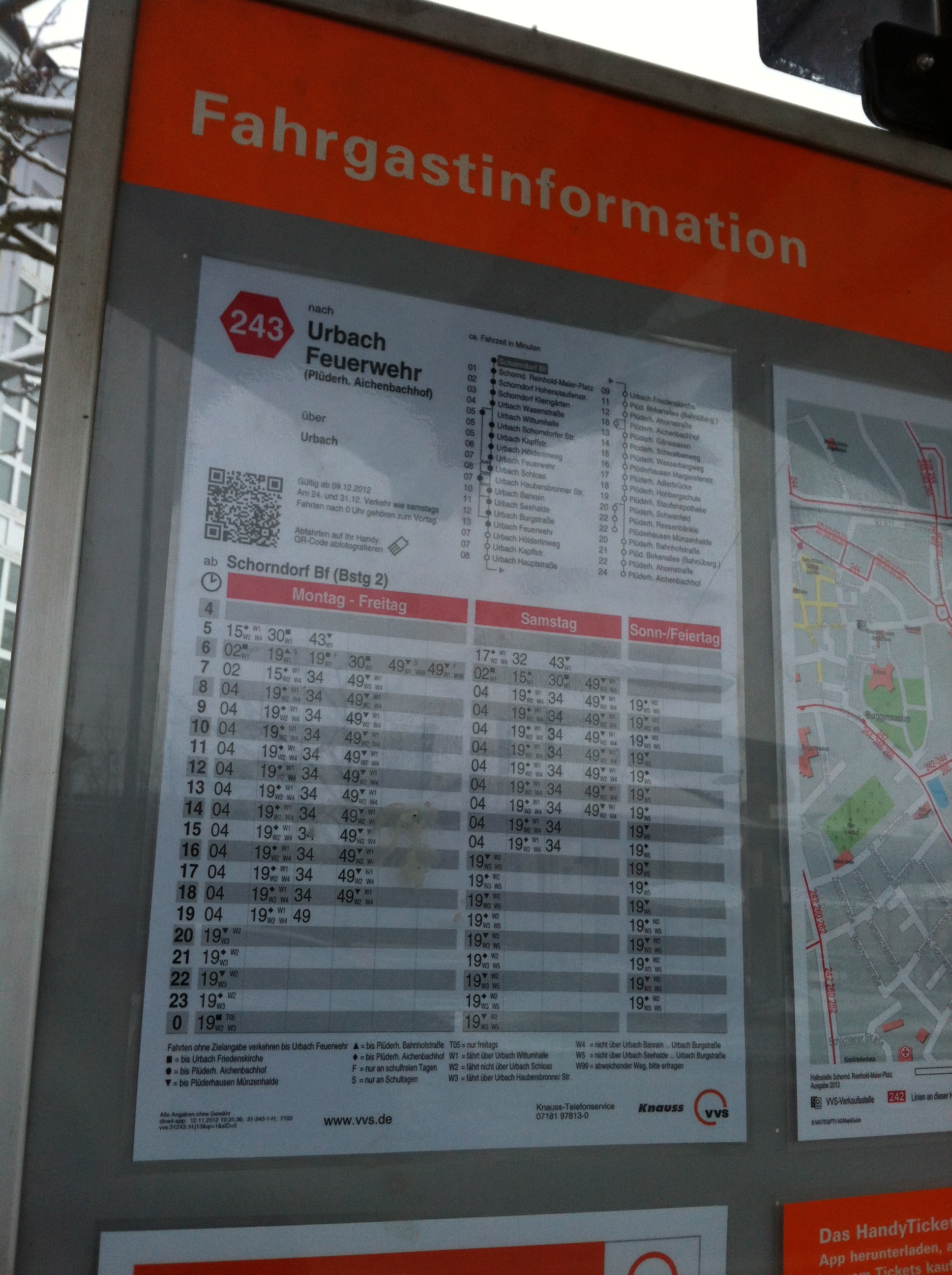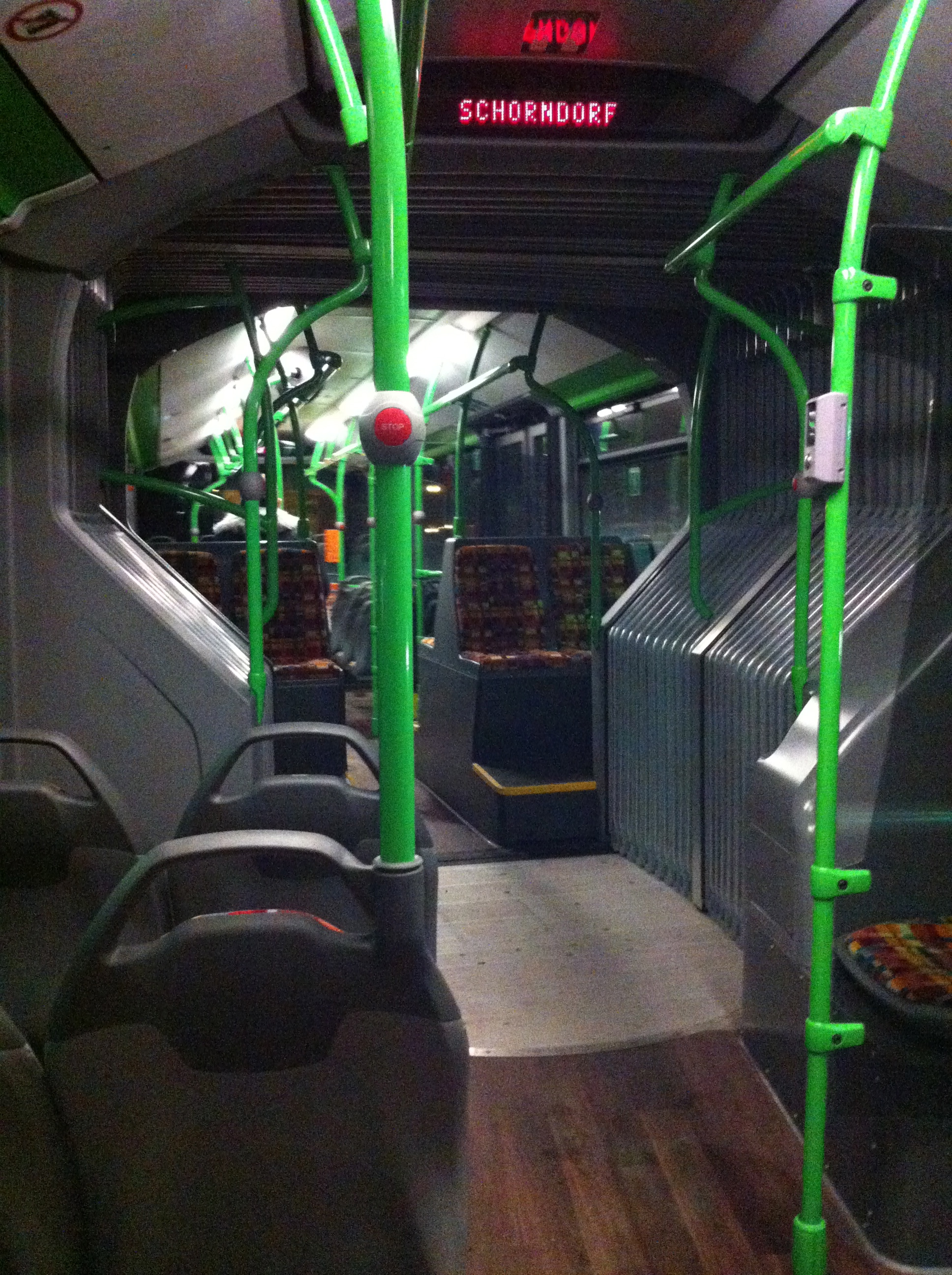 The second new love is public transportation. Oh. My. Gosh. It’s the best thing since gluten-free sliced bread! But really. The convenience of the mass public transportation here is something I wish we had at home. Of course, everything is way closer and there are way more people per area here, so it makes more sense, but it would definitely be a nice addition to America! Trains in Iowa, anyone? Think about it – you could go to downtown Des Moines (where the bars a little better than I-town’s) to go out with friends and not worry about paying for a cab or making one of you friends be the DD and have no problem getting home! Why? Because you can just hop on the bus and GET HOME SAFE! Besides this convenience, I personally love it extra-well because I HATE DRIVING!! Being able to sit on a bus or on the train and read to school is FAR better than getting in my car and having to pay attention to the road. Boooorinnggg! I for realzies love it. Also cool: the bus that I take to Schorndorf every day is a Mercedes bus – AWESOME! That’s right – I’m the high-roller that can take the Mercedes bus to school! (They’re all Mercedes, but no one has to know that…) 😉 The bus I have pictured is the size of TWO BUSES! They’re connected with and accordian-style ‘thing’ in the middle (which, yes, there are some in America too..), but these HUGE buses can get around the tightest round-about (which there are MANY of here) and it blows my mind! I always think we’re gonna take out some signs, or buildings, or people… but the bus drivers are good.