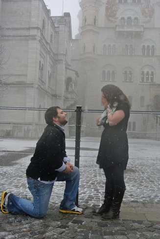 The next morning, we had to get going somewhat early again so we could get up to Neuschwanstein Castle – it was about a 2 hour trip with trains and buses. But it was worth it (for a few reasons) 🙂 It is the castle that Cinderella’s Castle was designed after, and apparently something in Harry Potter too… not sure. But it was breathtaking. A beautiful place. So, (digressing a little, but it’s important) Joel and I got an apartment in Ames for next year. So when we were headed up to the castle, he was like, “We should try to get a good picture so we can make a Christmas card.” I thought that was a GREAT idea. Send a Christmas card from our little apartment. I was all for it! And I kept saying, “Oooh this would be a good spot for a Christmas card picture.” Like, several times… making a fool of myself because I didn’t know what was coming… So our tour was about to start in, like, 2 minutes, and Joel was like, let’s go up to the top and take our picture there! And I thought sure, what the heck. So the whole group came with us. He gave Ella my camera to ‘take the Christmas card picture’ but everyone was taking the picture… I thought it was a little weird, but hey, whatever… He made us take our jackets off so we looked nice and not in puffy winter jackets (even though it was snowing…) So we got together to take the picture and, by golly, that boy was shaking like maraca in a mariachi band! I turned to him and was like, “Joel, are you cold?” and the next thing I know, he’s dropping down on one knee. Box with a ring in it in hand. I was floored!! I had absolutely no idea that this would be happening right then!!!! And then he asked me, in German, if I would be his wife. What did I say, “Did you ask my dad?” DID YOU ASK MY DAD! Oh gosh – I just don’t do well with ‘on-the-spot-stuff’ ha! Finally I came around and said, “Yes, of course.” 🙂 So now I get to marry Joel! Hopefully I’ll be getting the video soon – there’s a video! He seriously did such a good job – this place was picture perfect. Kinda like a fairy-tale 😉 The only problem was that there was NO free wifi in Munich and my phone wasn’t workingggg!! So it was difficult to not be able to tell everyone personally, but it’s okay – you still get the idea. 🙂